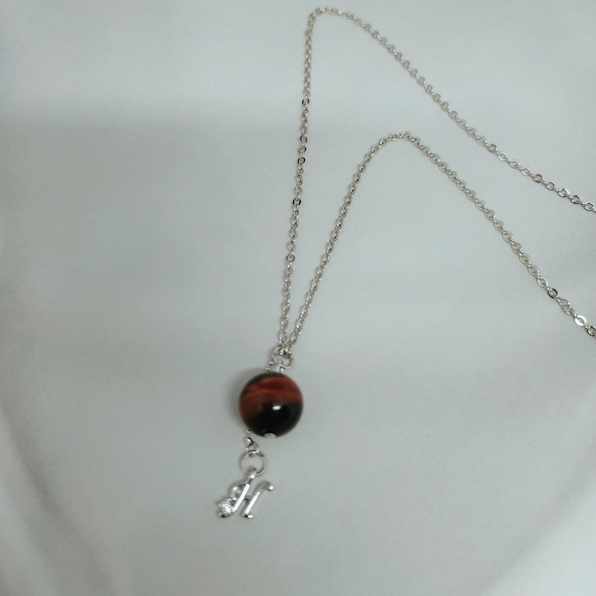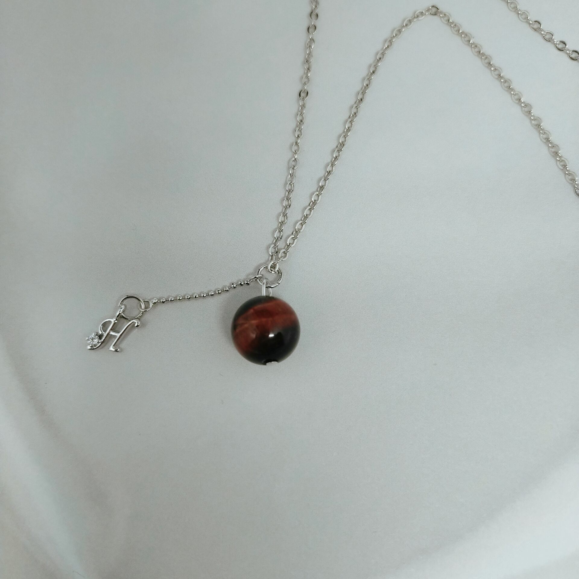 タイガーアイとイニシャルチャームの本ロジウムネックレスで、特別な瞬間を引き立てましょう!