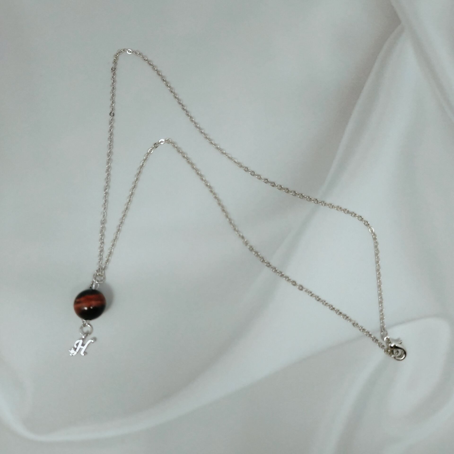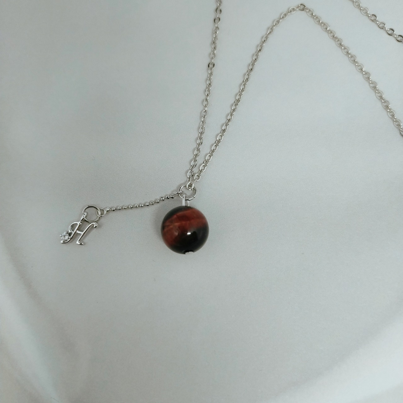 このタイガーアイとイニシャルチャームの本ロジウムネックレスを身に着ければ、周りの視線を集めること間違いなし!心を込めて製作したこの一品で、あなたの特別な瞬間を美しく彩ります。