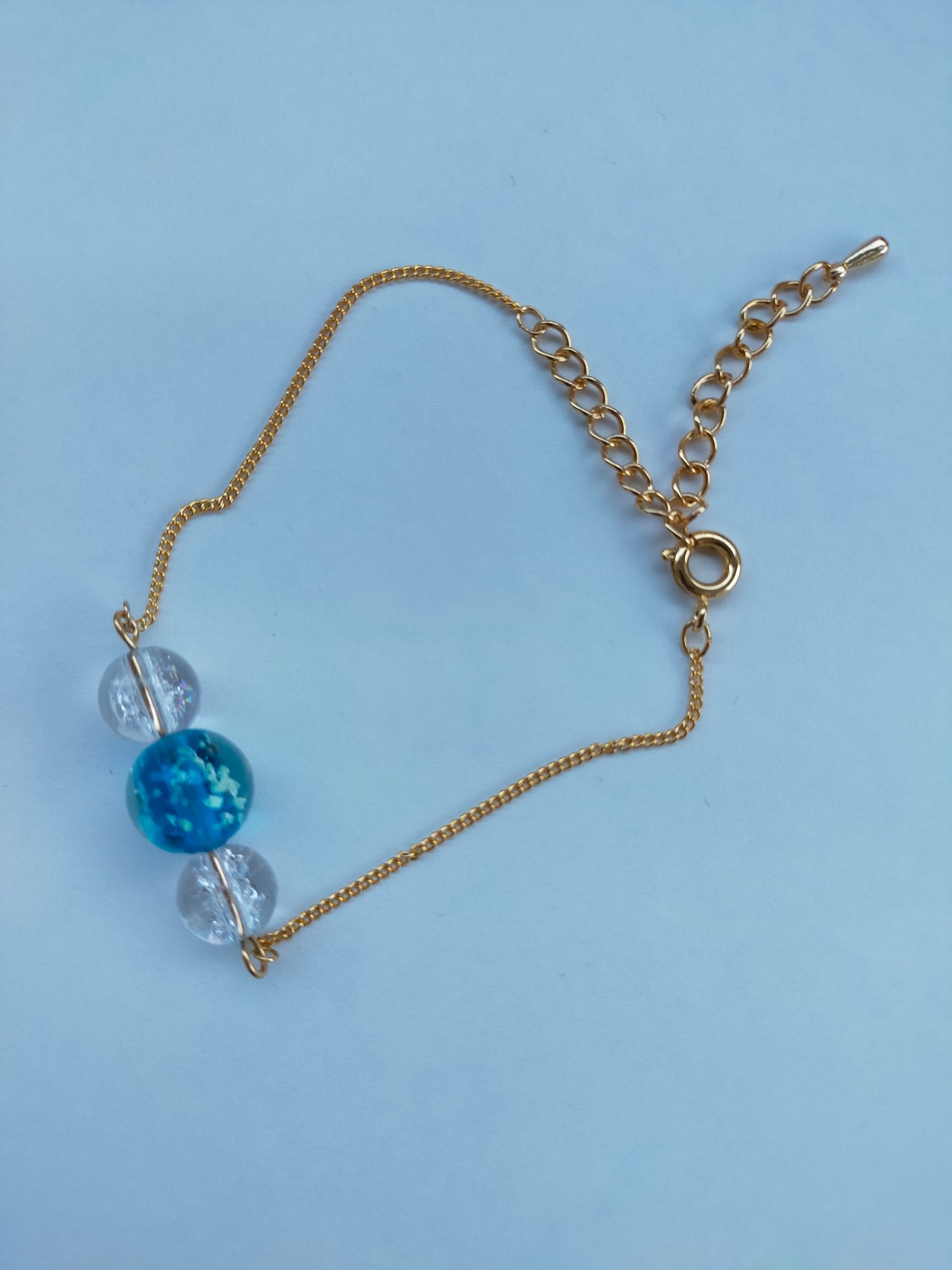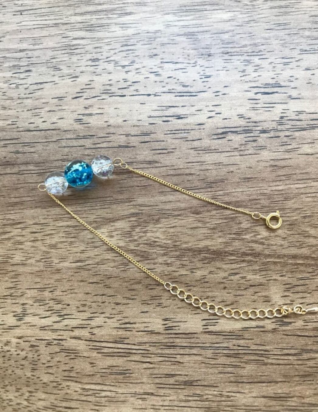 浴衣や和服にぴったりな水色蓄光ホタルガラス k16GPブレスレット兼アンクレット