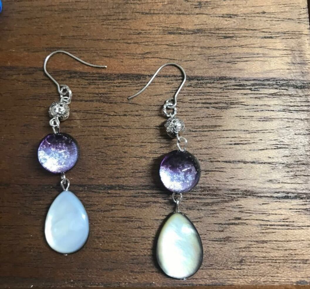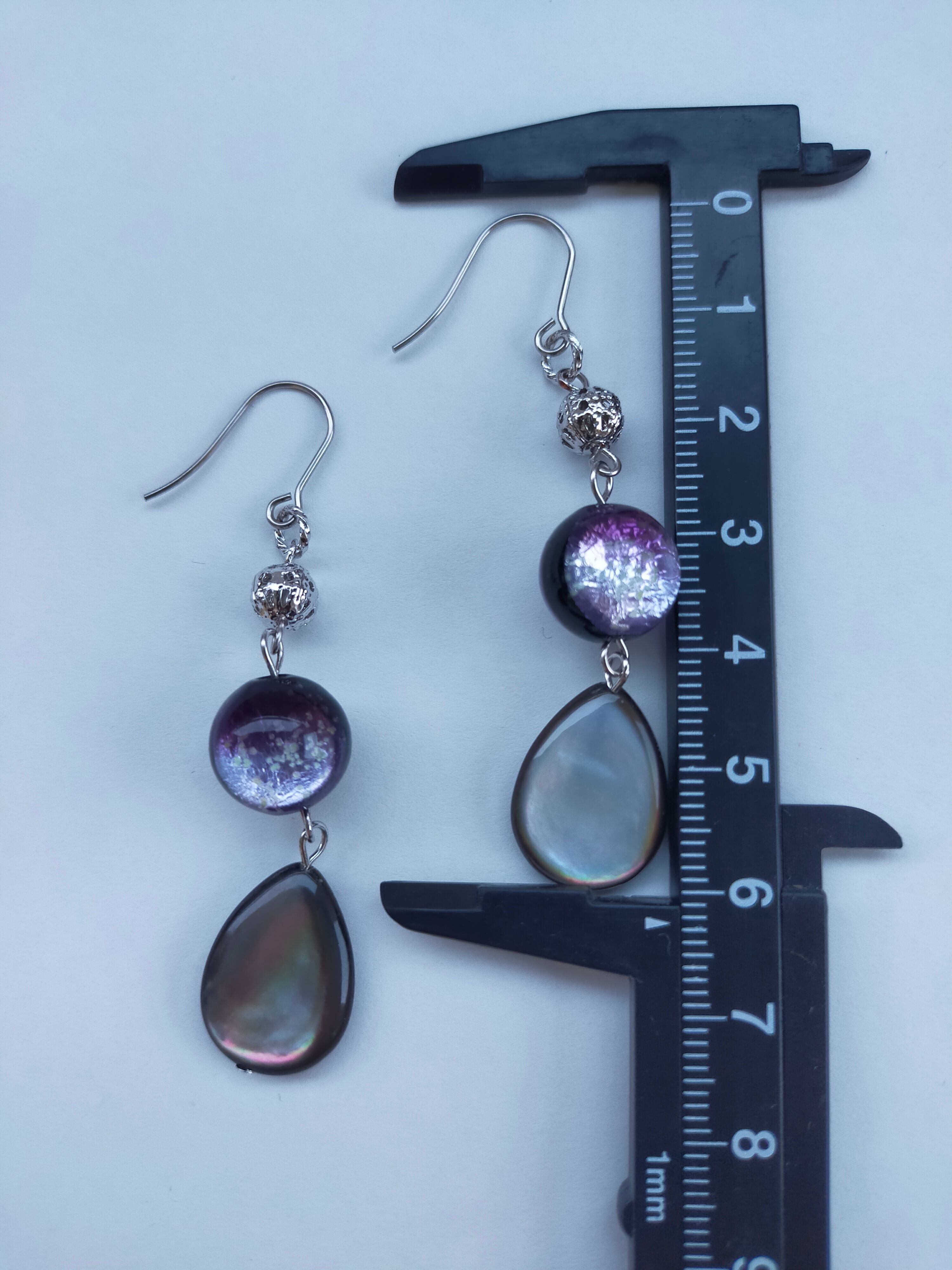 クールな蓄光紫ホタル玉と黒蝶貝のサージカルステンレス素材ピアスorイヤリング