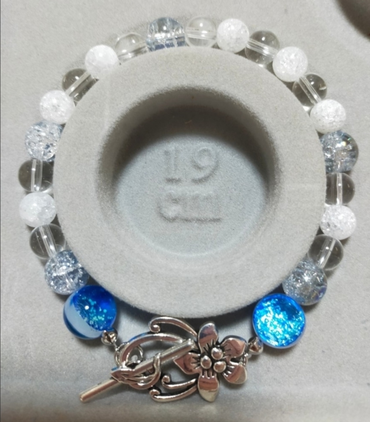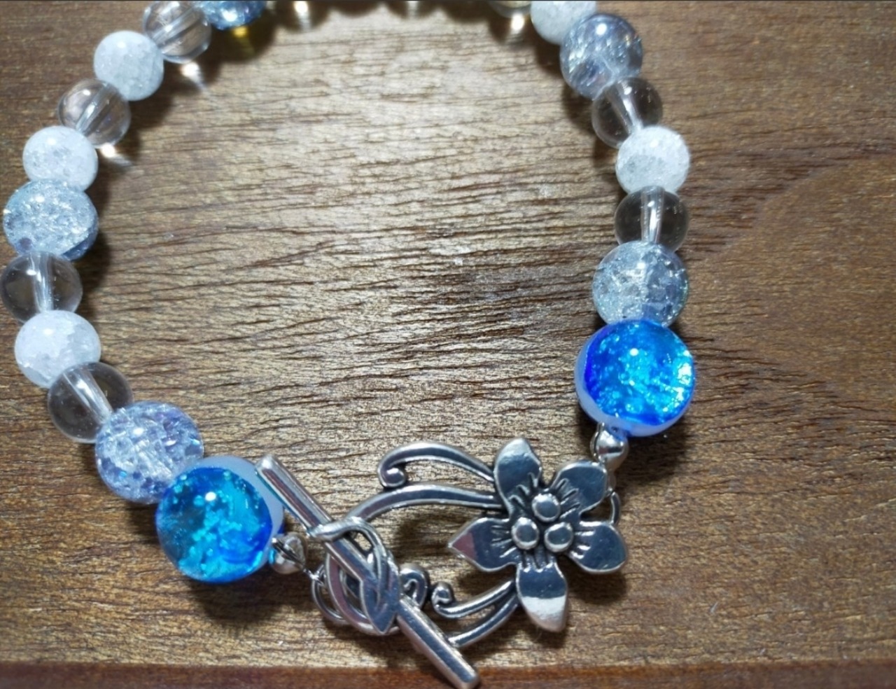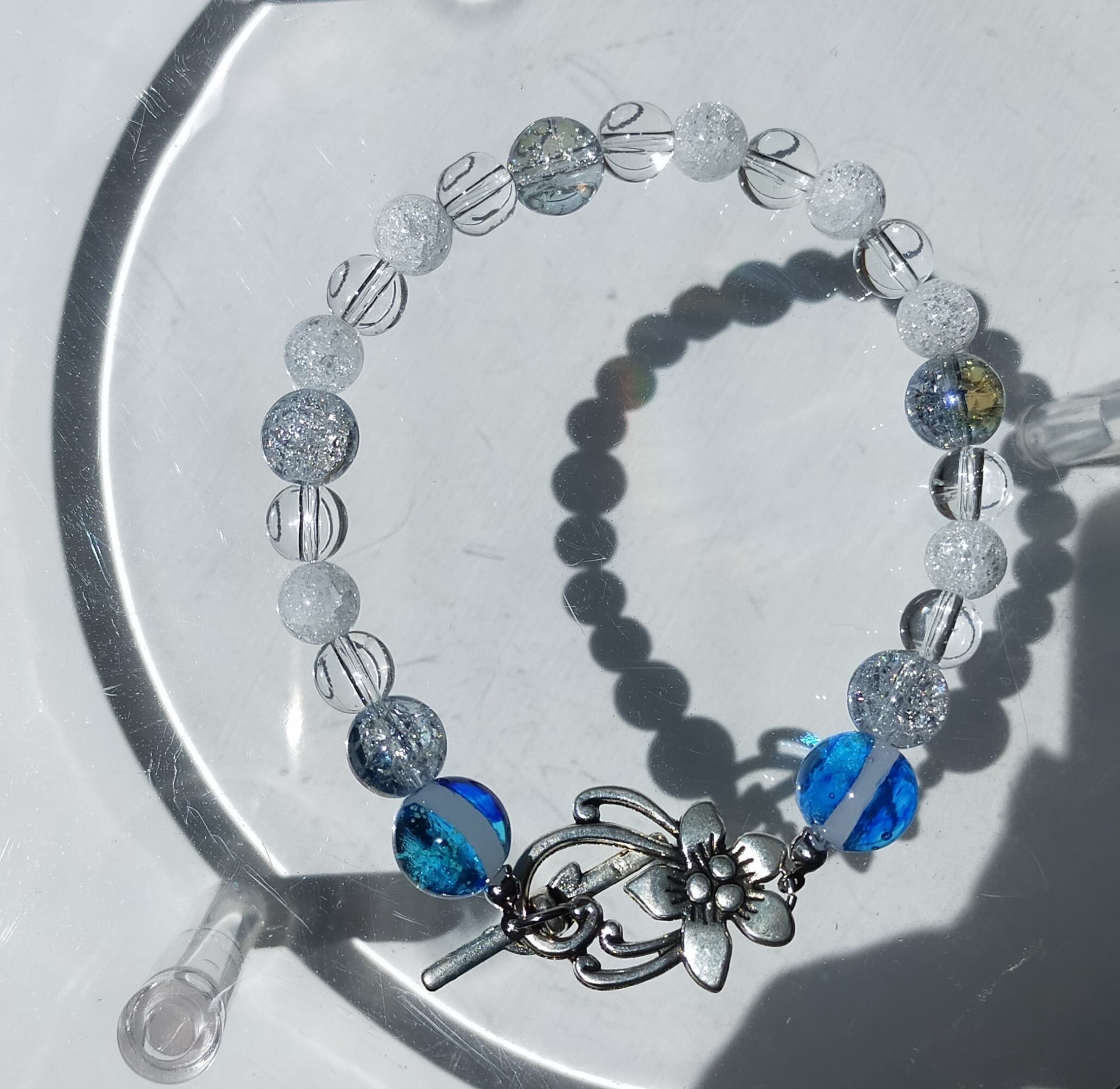 蓄光ホタルガラスとスカイオーラクラック水晶のブレスレット